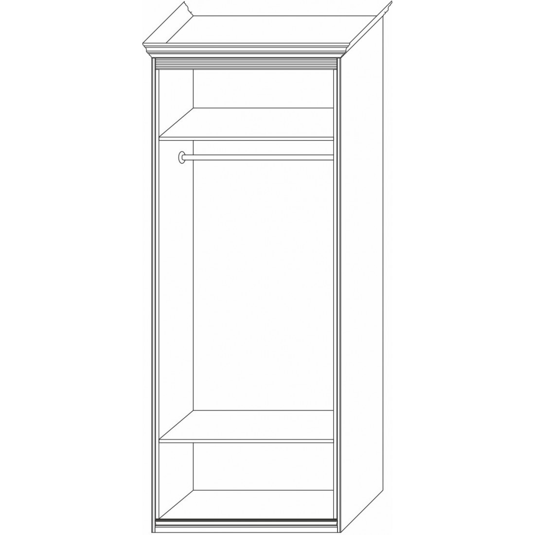 Шкаф 2-х дверный с глухой дверью и зеркальной Неаполь Ясень анкор светлый (патина "серебро")