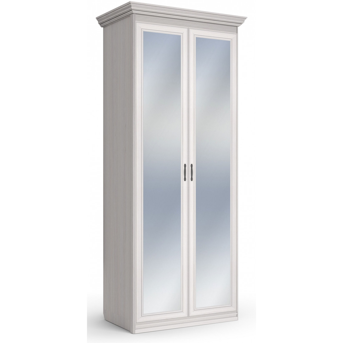 Шкаф 2-х дверный зеркальный Неаполь Ясень анкор светлый (патина "серебро")