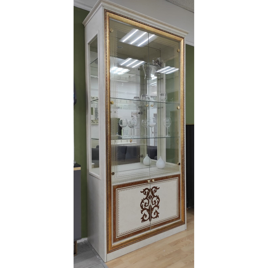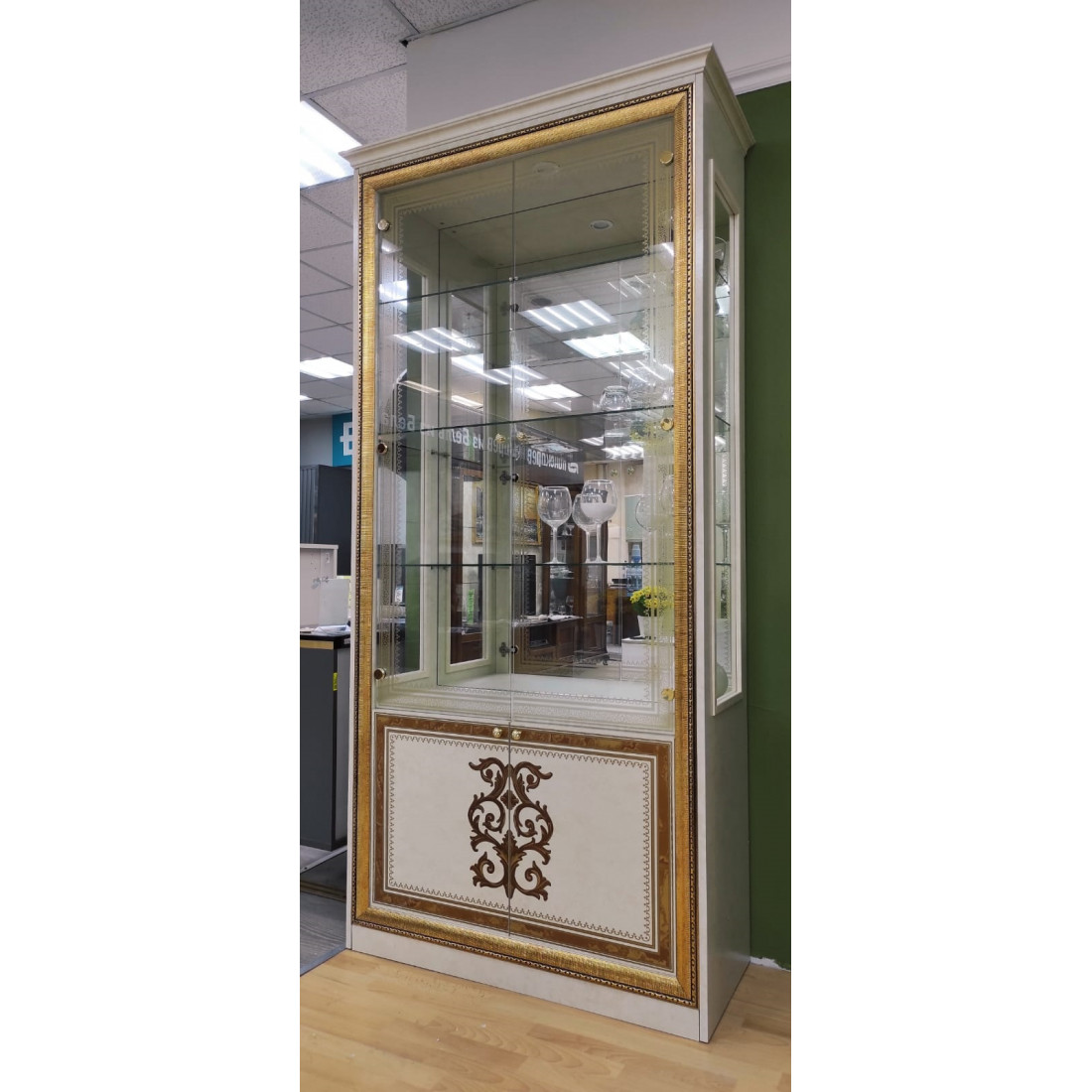 Шкаф-витрина двухдверный Анита (бежевый глянец) от Российской фабрики «ДИА мебель» Выполнена в цвете бежевый глянец с отделкой золотых фасадов. Классический стиль придают интерьеру неповторимую уникальность и роскошь. Изгибающиеся линии придают легкость и воздушность гостиной либо столовой. Коллекция "Анита" придаст вашему дому экстравагантность и принесет свежие нотки.