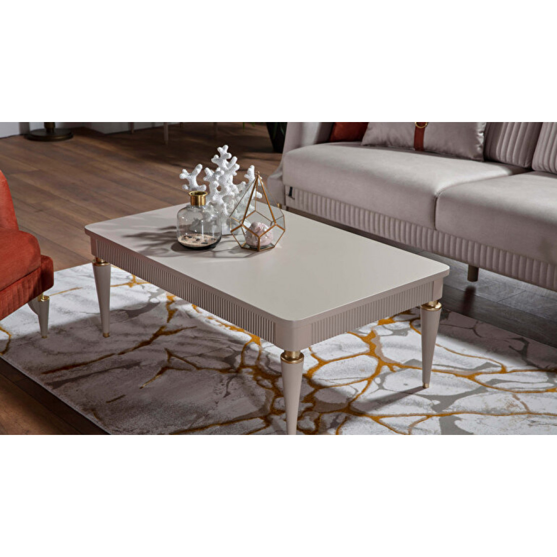 Стол журнальный прямоугольный Санвито SANV-50 выполен в традиционном для этой коллекции светлом кремовом цвете. Габаритные размеры столика 110х67х430 прекрасно"впишутся" в гостиную, залу, кабинет. Элементы золотистой отделки ножек, рифленая поверхность боковин и скругленные углы столешницы все это характерные черты серии Санвито.